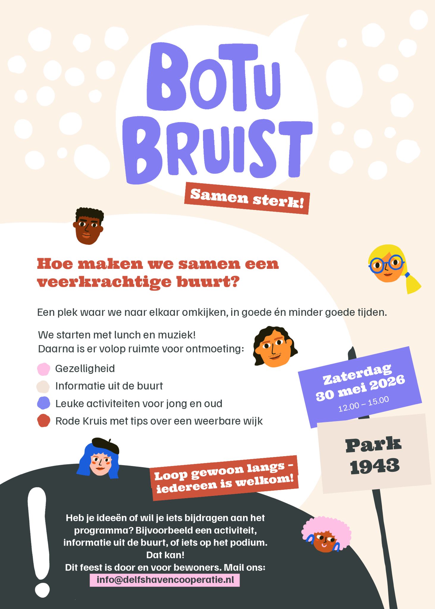 Op zaterdag 30 mei 2026 is er een feestelijke bijeenkomst in Park 1943, van 12.00 tot 15.00 uur. Het feest is door en voor bewoners.